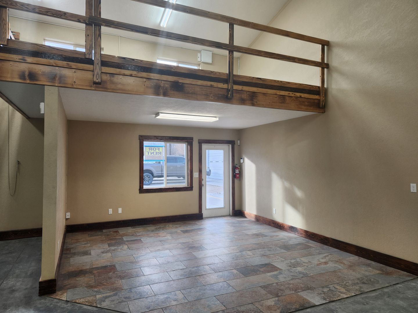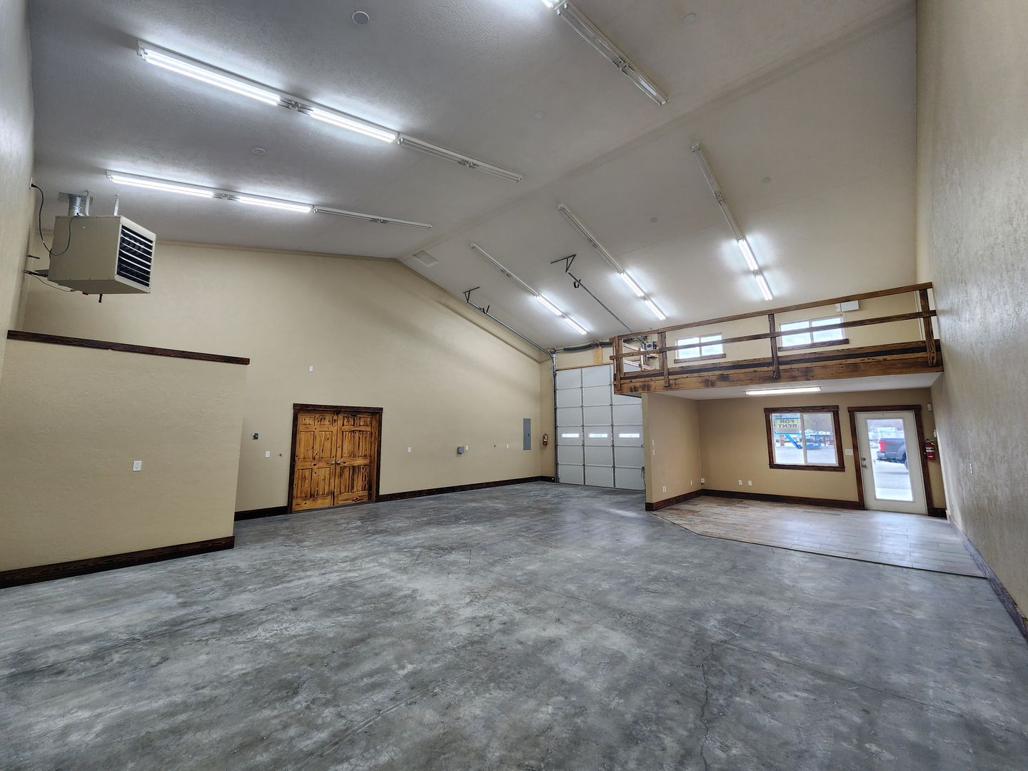 Shop space with 10x12 garage door with commercial opener, loft for storage (no stairs access, requires a lift), 3 phase electric, piped for compressed air, gas heater, bathroom. This unit has a nice tiled entry and the rest is commercial/industrial ready.
