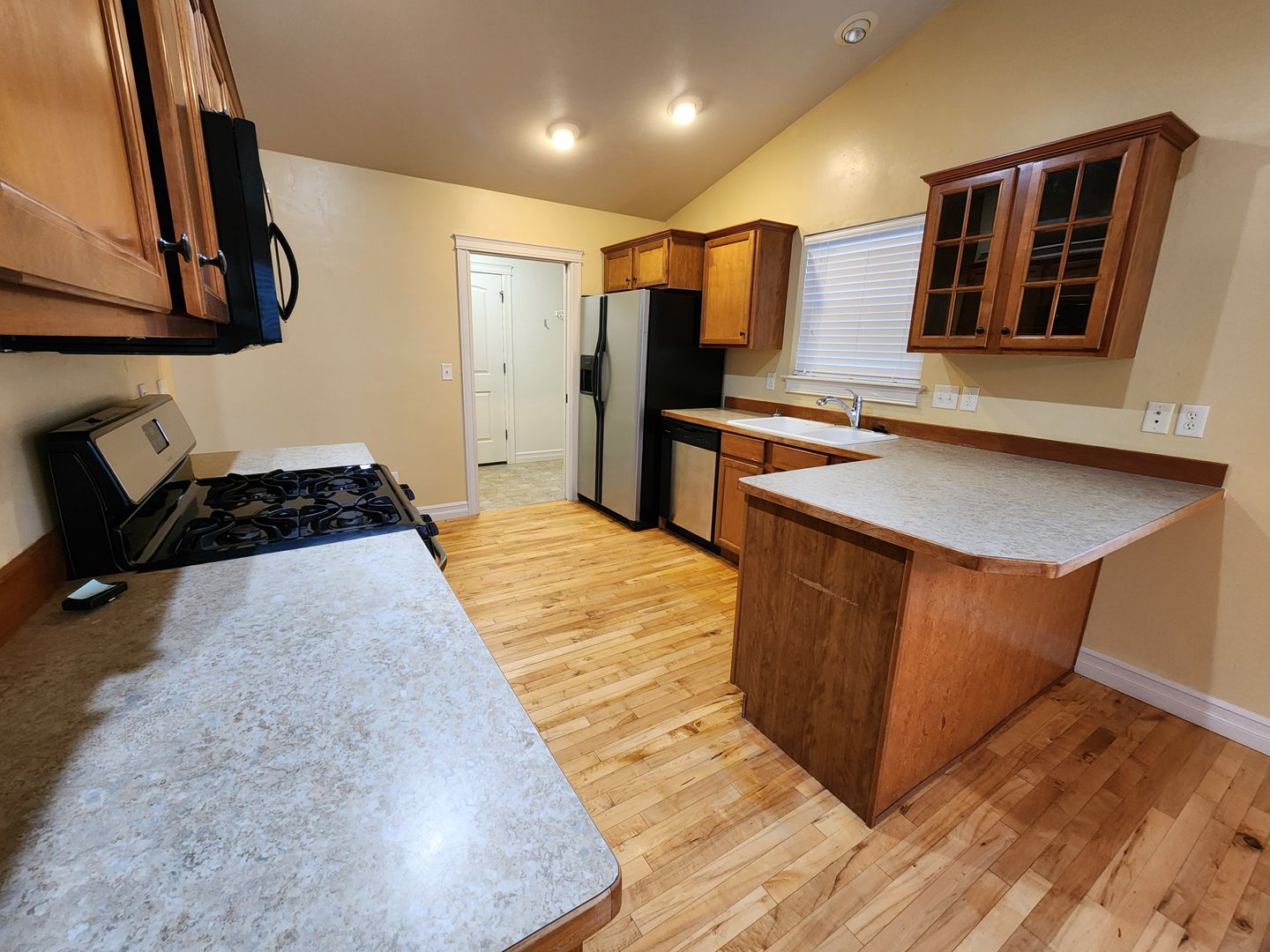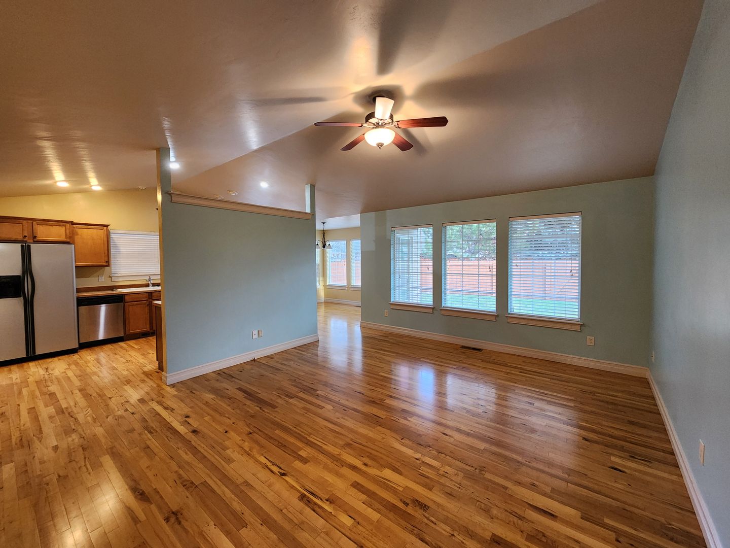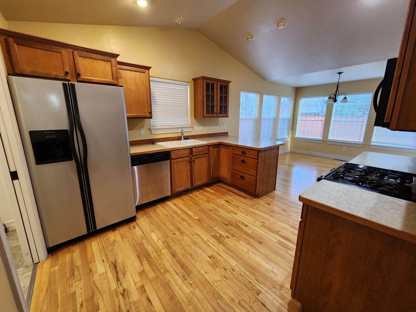 Lovely home with hard wood floors, laundry room. Fenced yard has sprinkler system and covered patio.