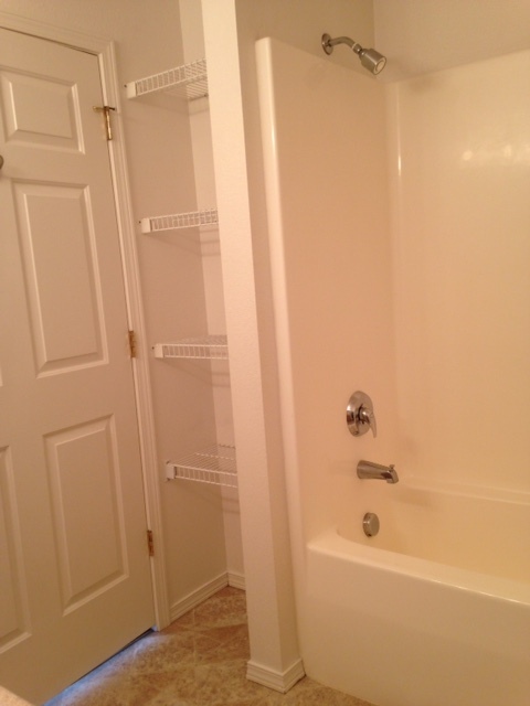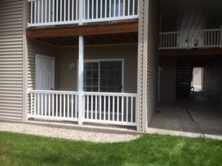 Upper level unit with covered patio, storage closet, and central air-conditioning.