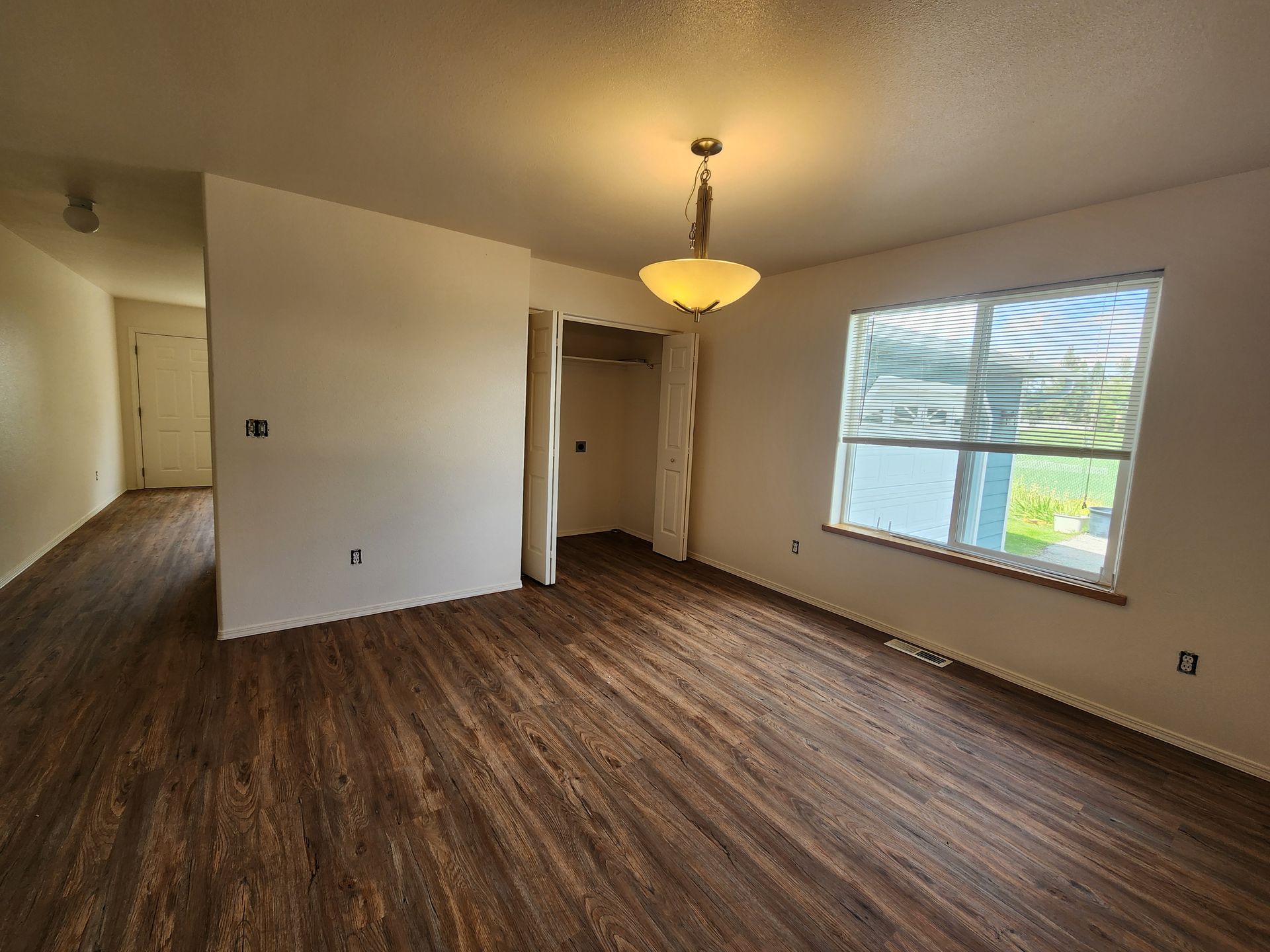 Nice two level unit on the edge of town with single garage space and maintained yard.